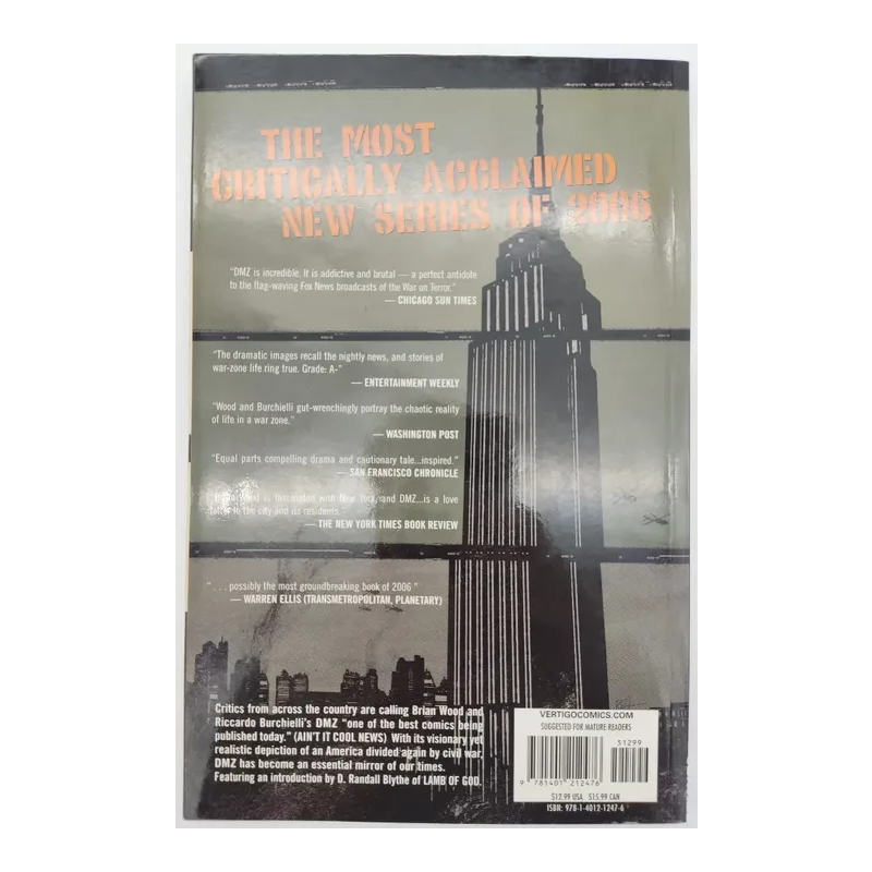 Critics from across the country are calling Brian Wood and Riccardo Burchielli's DMZ one of the best comics being pblished today. With its visionary yet realistic depiction of an America divided again by civil war, DMZ has become an essential mirror of our times. Featuring an introducing by D. Randall Blythe of Lamb of God.