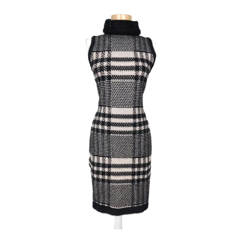 Fracomina Damen Rollkragenkleid, schwarz/weiß/rosa - Gr. XS