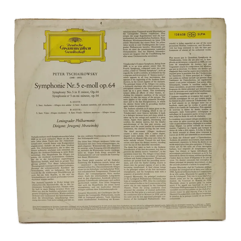 Vinyl LP - Peter Tschaikowsky, Jewgenij Mrawinskij - Symphonie Nr. 5 e-moll op. 64